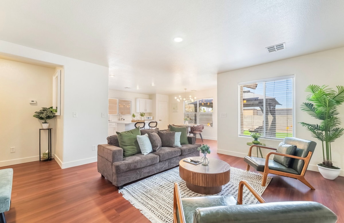 ¡Experimenta la tranquilidad en nuestra luminosa y acogedora unidad de arriba con acceso privado, ubicada en el corazón de Silverado Ranch! Relájate en el gran patio con barbacoa, con vistas a un sereno patio trasero, perfecto para el café de la mañana o las bebidas de la noche. El segundo dormitorio flexible funciona como una oficina, ideal para el trabajo a distancia. Ubicado a solo 13 minutos del aeropuerto y cerca de tiendas y restaurantes, nuestro alojamiento ofrece comodidad y confort. Disfruta de la espaciosa sala de estar y el comedor para una estancia verdaderamente relajante.