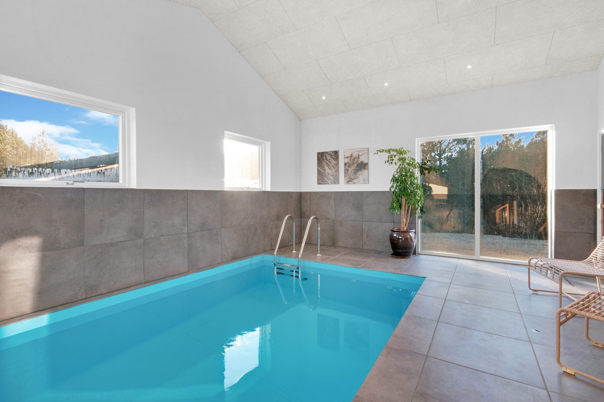 Entra en un mundo de lujo y comodidad en Hafavej en Søndervig, donde esta exclusiva casa de piscina de nueva construcción está lista para ofrecerte una experiencia vacacional inolvidable. Construida en 2024 y ubicada a solo 300 metros del majestuoso mar del Norte y a 500 metros del centro de Søndervig, esta casa de piscina de 180 metros cuadrados ofrece la combinación perfecta de proximidad a la naturaleza y las comodidades de una animada ciudad vacacional. Con espacio para 10 personas y alojamientos que admiten mascotas, esta casa de vacaciones es ideal para familias o grupos que buscan disfrutar de unas vacaciones relajantes juntos. La impresionante zona de piscina con sauna es el corazón de la casa e invita a horas de diversión y relajación. Los 3 lujosos baños garantizan que haya mucho espacio para todos, y la bomba de calor aire-a-agua de ahorro de energía garantiza temperaturas cómodas en toda la casa. Con 4 habitaciones repartidas en dos alas de dormitorio separadas, así como un loft con 2 lugares para dormir y una alcoba conectada a la sala de estar, hay mucho espacio para todos. Las habitaciones bellamente decoradas cuentan con camas cómodas que garantizan una buena noche de sueño. La sala de estar/comedor de 40 metros cuadrados es el lugar ideal para reunirse y disfrutar de comidas juntos. Los muebles elegantes y las comodidades modernas, como un televisor con satélite para canales alemanes, así como Chromecast e internet inalámbrico, ofrecen entretenimiento para toda la familia. Al aire libre, puedes disfrutar de la encantadora terraza con spa al aire libre, donde puedes relajarte y disfrutar del cambiante clima danés. La terraza está parcialmente cubierta y parte de ella está cerrada, lo que te permite disfrutar de la vida al aire libre independientemente de la temporada. ¡Esperamos disfrutar de una experiencia vacacional inolvidable en esta exclusiva casa con piscina en Søndervig!