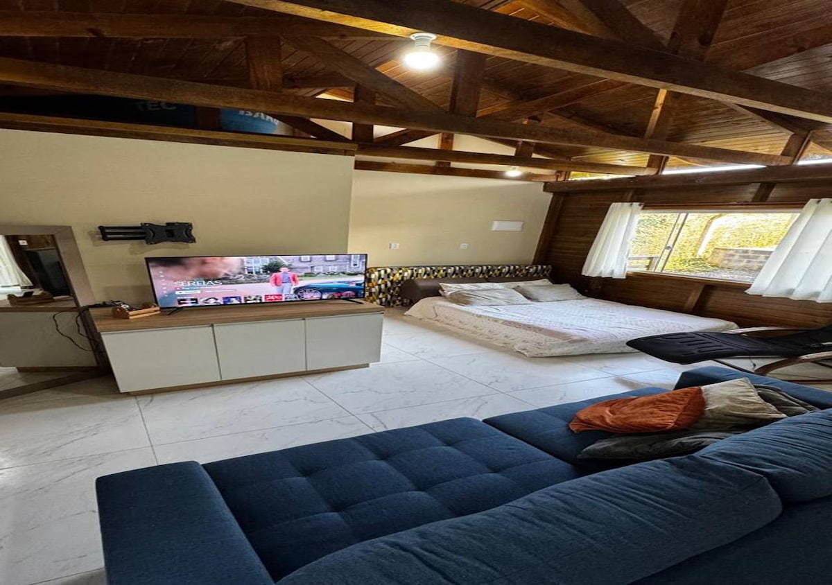 Ubicado en Santa Catarina, en el interior de Luzerna. En un lugar rodeado de naturaleza, para descansar y recargar energías. A pesar de estar ubicada en medio de la naturaleza, Cabana cuenta con algunos elementos modernos y tecnológicos, como automatización, Alexa, vidrio inteligente, suelo radiante, entre otros. En la zona al aire libre, tiene una piscina natural, siendo una experiencia única donde puedes nadar junto a los peces. ¡Además de una espaciosa terraza con una red suspendida, fogata y una vista apasionada!