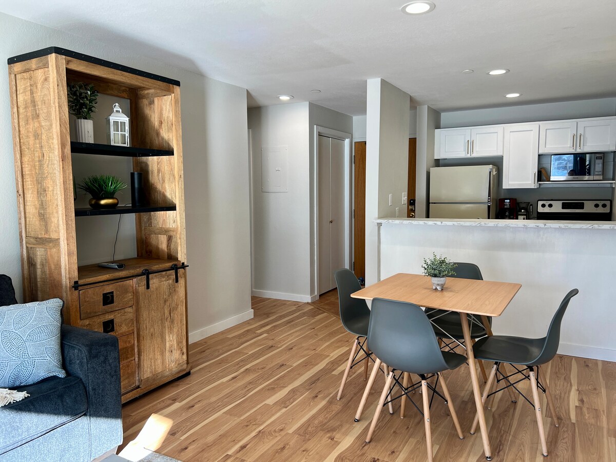 Te sentirás como en casa en el corazón de este departamento renovado. Estarás en las pistas en 2 paradas de autobús con recogida justo afuera. En Main Street, frente a Cooper Creek y al Rendezvous Event Center, la ciudad espera. Organiza fiestas familiares con la cocina totalmente equipada y cena hasta nueve personas. Relájate en las bañeras de hidromasaje, en el enorme sofá junto a la televisión por cable digital de pantalla grande con servicios de streaming, en la terraza y en las bañeras de hidromasaje. Cama Cal King decadente en el dormitorio principal. Taquillas para esquís junto al ascensor.