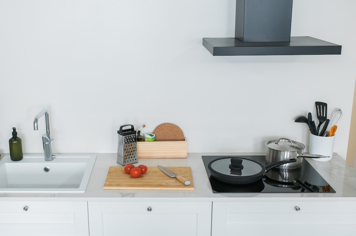 Estudio con cocina y cama tamaño queen cerca del parque de la ciudad