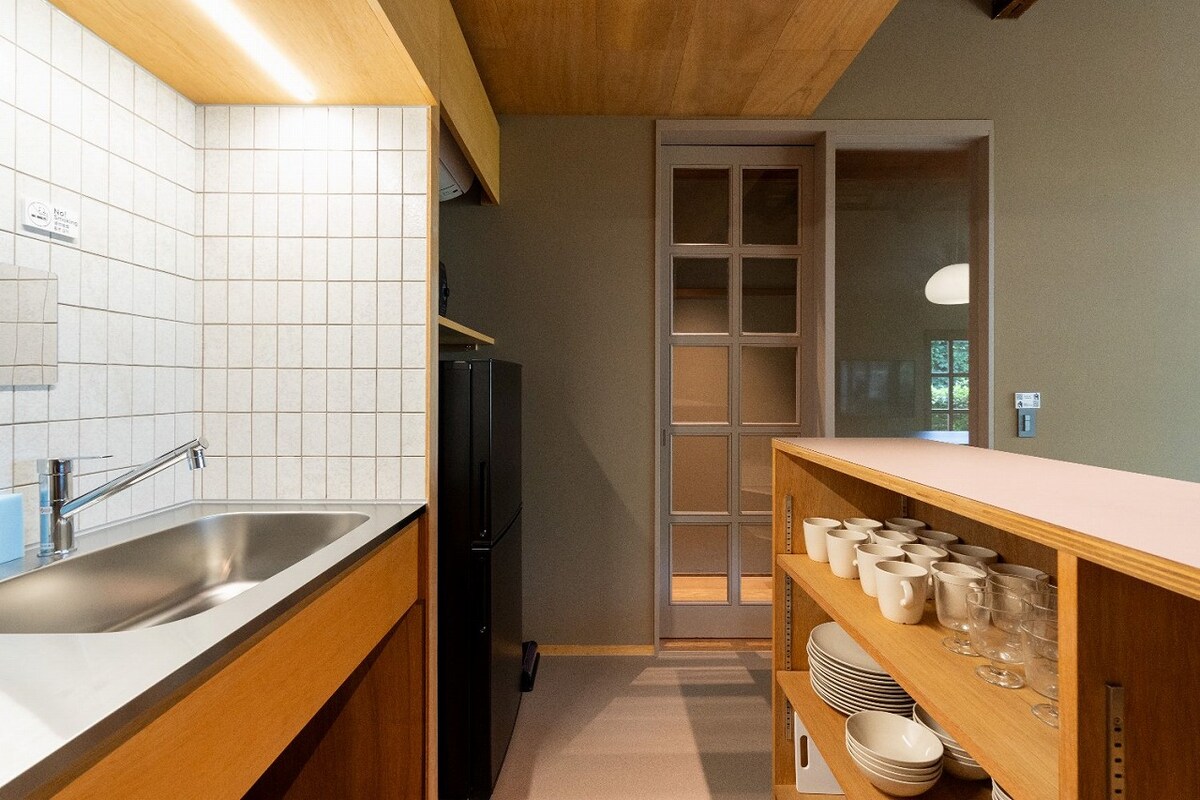 Our inn is a tranquil hideaway surrounded by a bamboo grove, where you can enjoy the crisp air and beautiful night sky, and experience a sense of peace as if you had stepped back into old Kyoto. Fushimi Inari Taisha Shrine is a 20-minute walk via public roads, or a 16-minute walk through the beautiful bamboo grove paths of Mount Inari. It features a fully equipped kitchen, an electric recliner sofa, and a 65-inch TV with Netflix. Free Wi-Fi is also available.