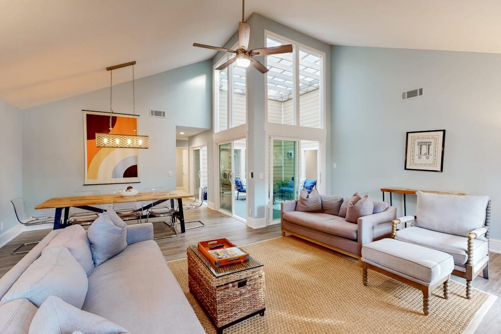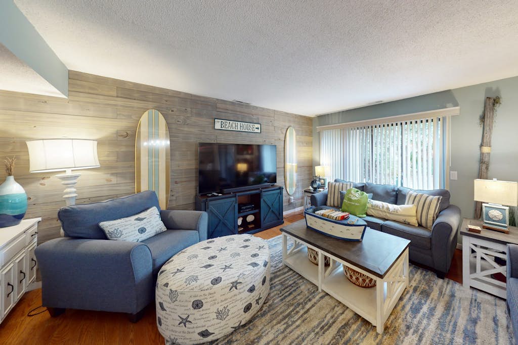 Alójate a pocos pasos de la piscina y a poca distancia de la playa en esta espaciosa casa adosada de Beachwalk. Dos salas de estar, cómodas habitaciones, cocina completa y estacionamiento para tres vehículos lo hacen perfecto para familias o grupos. Disfruta de la ubicación tranquila y conveniente de Shipyard, cerca de carriles para bicicletas, canchas de tenis y restaurantes.