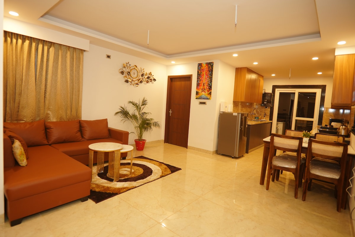 Olvídate de tus preocupaciones en este espacio espacioso y sereno. Nuestra casa de huéspedes tiene vistas a un gran y exuberante jardín verde. La terraza ofrece una vista de 360° de las montañas. Puedes disfrutar de la noche en tu propio patio y disfrutar de la barbacoa. La casa de huéspedes es espaciosa con 1 dormitorio de diseño, baño adjunto, una cocina totalmente equipada y tu propio patio personal, lo que la convierte en un hogar perfecto lejos de casa. - Mussoorie: 18 km - Cueva del ladrón, Sahastradhara - 20 minutos - Wifi gratuito, Netflix - Famosos restaurantes cercanos.