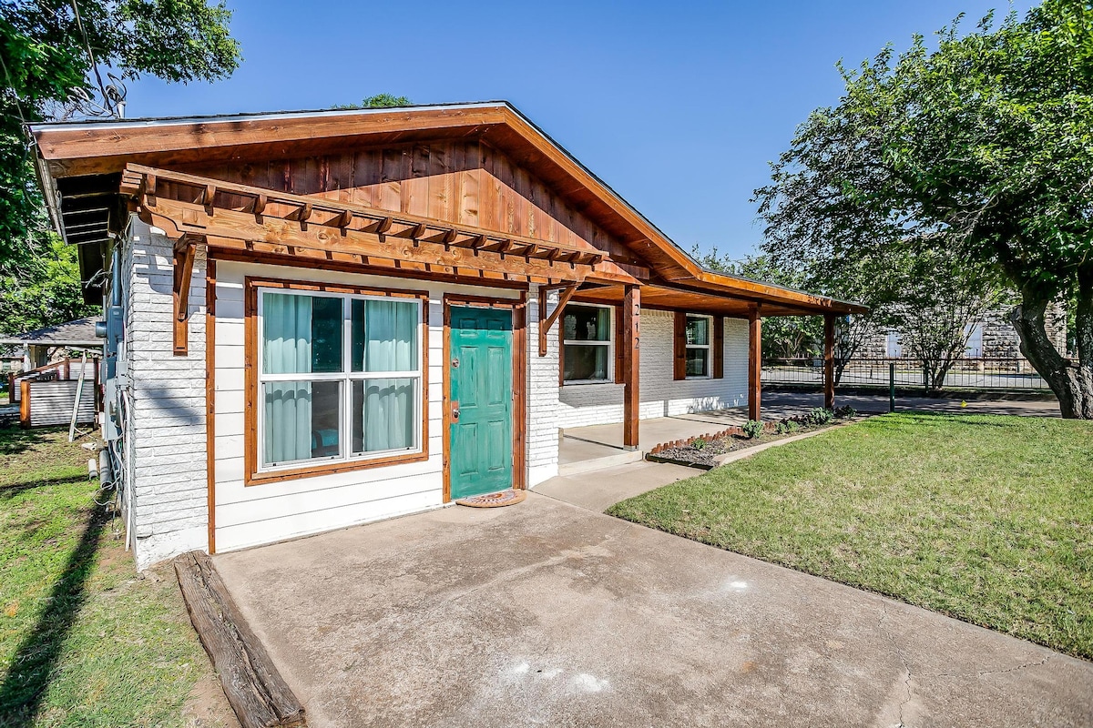 Encantadora escapada a Granbury: oasis moderno de mediados de siglo cerca de la plaza ¡Relájate y explora el corazón de Granbury en esta encantadora casa moderna de mediados de siglo! Esta casa de 1955 diseñada profesionalmente cuenta con 800 pies cuadrados de espacio habitable cómodo, perfecto para un retiro en pareja o unas pequeñas vacaciones familiares. Con una ubicación ideal a poca distancia a pie de la plaza histórica de Granbury, tendrás fácil acceso a encantadoras tiendas, deliciosos restaurantes y lugares históricos.