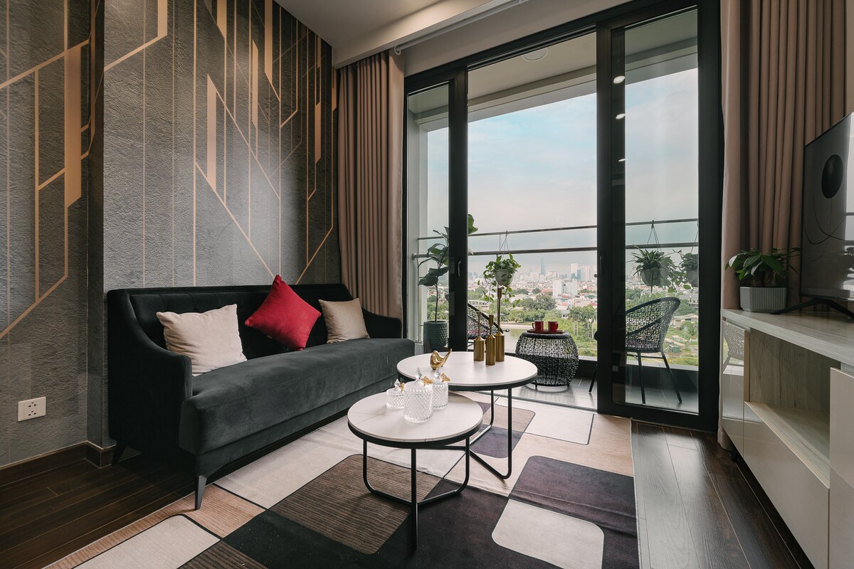El apartamento está lujosamente diseñado, moderno con espacio abierto, vistas poéticas tanto del lago como de la brillante ciudad. Cocina totalmente equipada con utensilios de cocina básicos, horno conveniente, listo para comidas deliciosas. Puedes relajarte con el televisor de pantalla grande disponible Netflix o disfrutar de una copa de vino en tu propio espacio acogedor. En particular, también tienes acceso gratuito a una moderna piscina y gimnasio en las instalaciones, lo que te ayuda a mantenerte activo y relajante durante tu estadía.