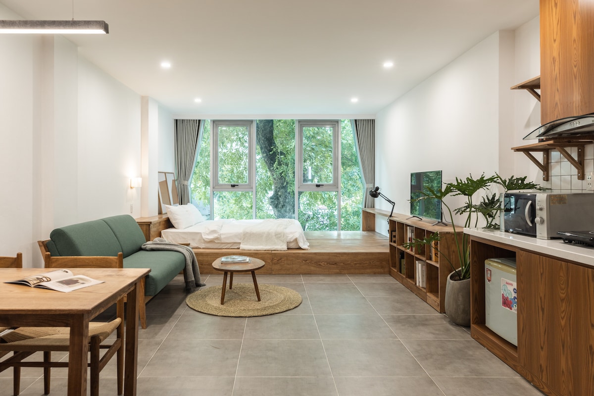 Imagina tomar una taza de café,echar los ojos sobre el tren que pasa y disfrutar de la luz del sol en el balcón de un departamento maravilloso, esta es realmente la mejor experiencia que puedes tener en NaSa House. Todo parece reducir la velocidad,lo que te permite sumergirte por completo en el momento y disfrutar de los sencillos placeres de la vida. Tanto si eres un viajero de placer como un negocio,NaSa House ofrece una ubicación privilegiada perfecta para cualquier persona que quiera experimentar la verdadera vida hanoiana.