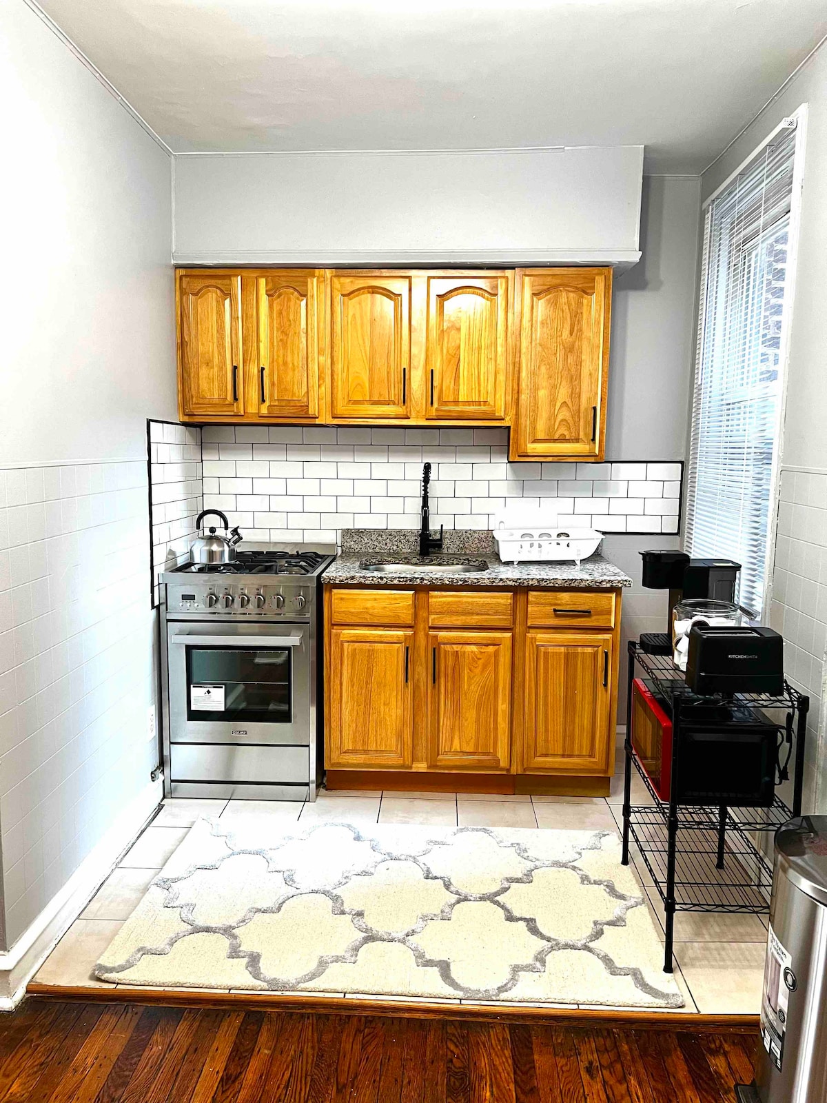 Enjoy this renovated Chestnut Hill apartment, ideal for long stays. This two-story retreat features two spacious bedrooms and a full bathroom with a standing shower upstairs. Downstairs offers powder room, a fully equipped kitchen, and a cozy living room. Each bedroom has a queen-sized bed and ample closet space. The kitchen includes a gas range/oven, microwave, dishwasher, and refrigerator with water and ice dispenser. Start your day with a Keurig coffee maker in the heart of Chestnut Hill.