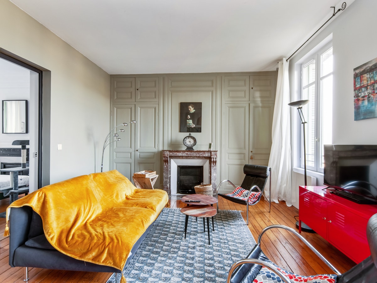 Respetamos todas las nuevas reglas de limpieza relacionadas con la COVID/19. más de 400 comentarios de 5 estrellas para este estudio bañado en calma y luz situado en el barrio de Sainte Catherine, centro histórico, con vistas a la magnífica iglesia con su campanario separado único en Francia. A dos pasos de todos los comercios, restaurantes y museos de la ciudad. Añado que mi estudio está clasificado con tres estrellas por Calvados Tourisme (organismo estatal).