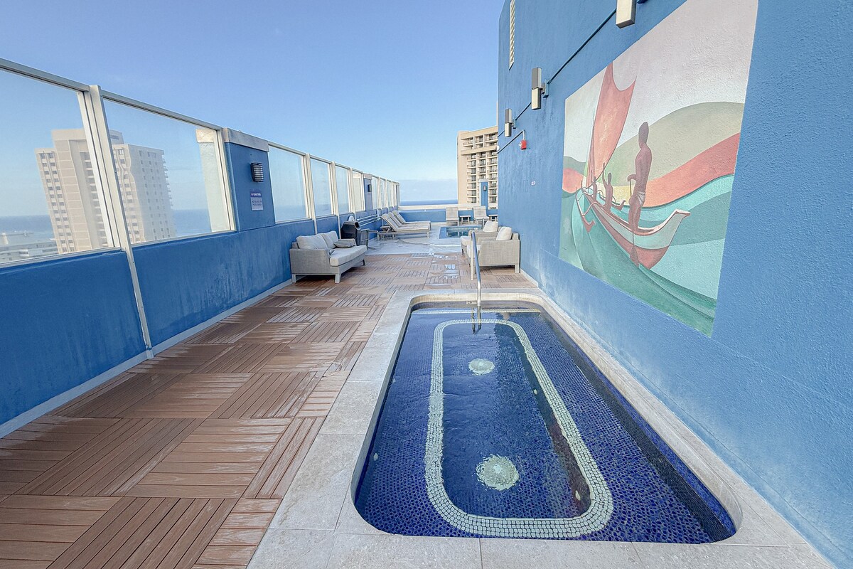 ¡Perfecta suite estudio con vistas a la ciudad en la playa de Waikiki!