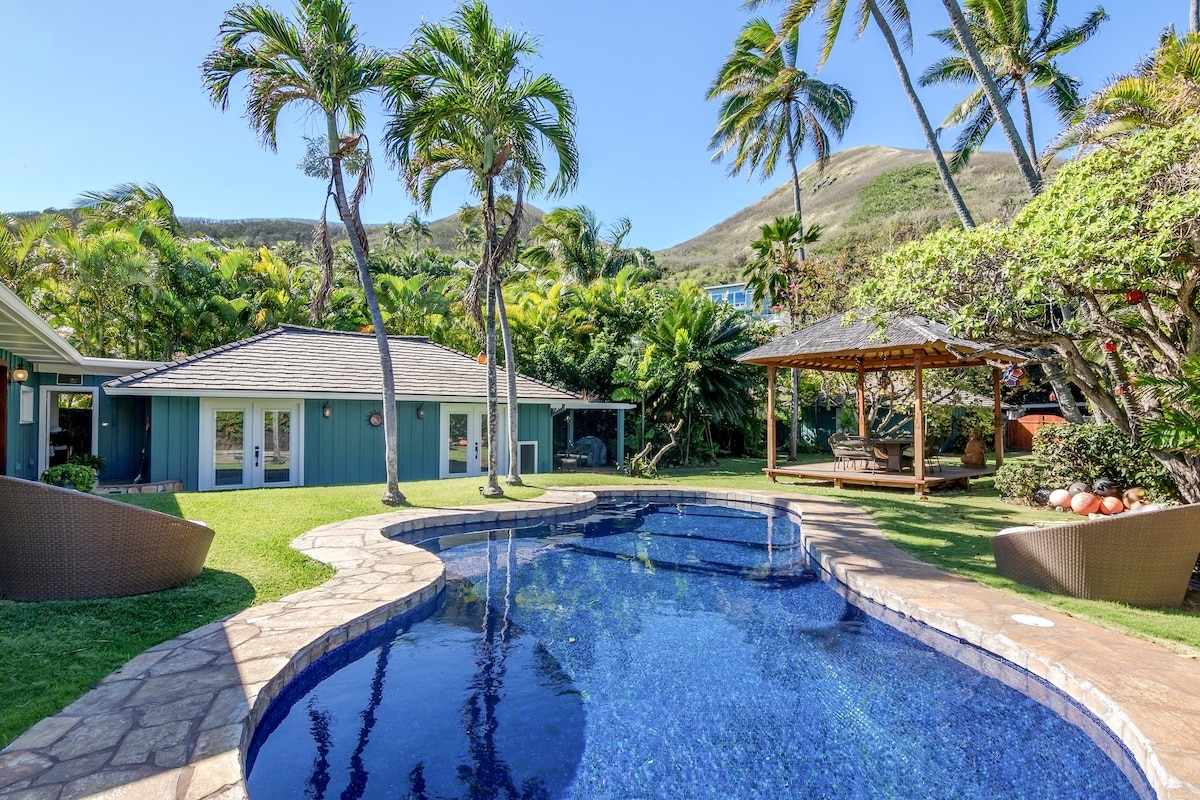 My oceanfront home is a slice of paradise, located close to beaches, hiking, dining, water activities, and public transportation You’ll love the view, solar heated pool, hot tub, spa-style master bath with 7’ marble tub & steam room, gourmet kitchen, and large outdoor gazebo. My home is beautifully appointed with hand picked Balinese decor, including a hand carved 12’ teak table. Weddings & Parties are prohibited as well as children under 13.