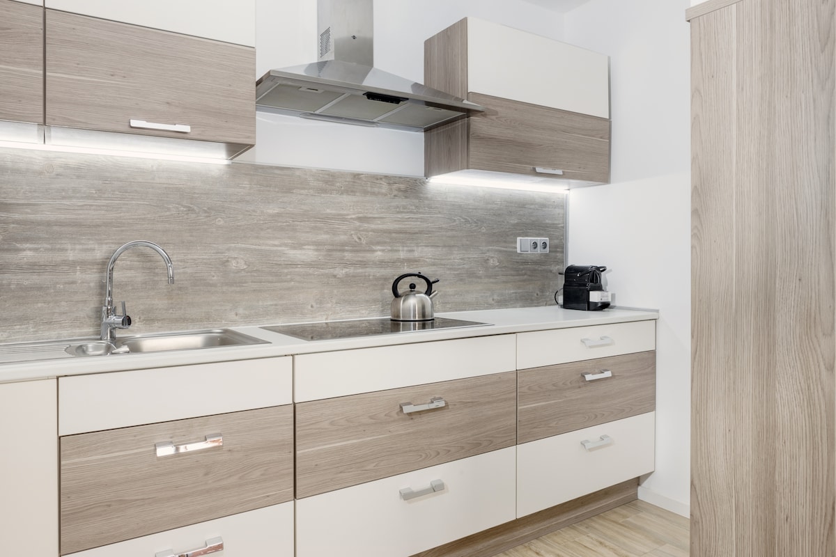 El edificio de apartamentos Black & White Apartments se encuentra en Brno, en una zona tranquila rodeada de naturaleza. El alojamiento está cerca del recinto ferial de Brno y también cerca de la salida de la autopista a Praga. Los apartamentos están completamente equipados con muebles, electrodomésticos, aire acondicionado y la privacidad de los huéspedes está garantizada gracias a las persianas de las ventanas. Los huéspedes pueden disfrutar de café Nespresso, té y agua gratis. El apartamento incluye un minibar de pago.
