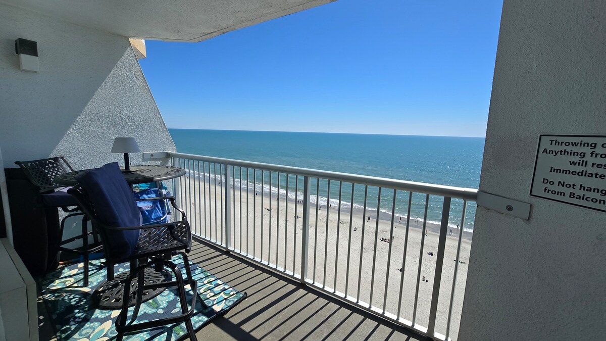 Sofá nuevo Lavadora y secadora nueva Cocina nueva - Baño nuevo. Nueva adición con chimenea y consola de pared de TV. Renovado con todo el piso de madera, muebles y colchones nuevos. Increíble vista del océano Atlántico a través del balcón directo frente al mar, ubicado en el centro de la playa de Myrtle. A pocos pasos del parque de atracciones Family Kingdom, Beach Boardwalk, 2nd Ave Pier. Disfruta de la impresionante vista y la brisa en el balcón. Piscinas climatizadas interiores y exteriores, 3 jacuzzis, gran piscina infantil, río lento.