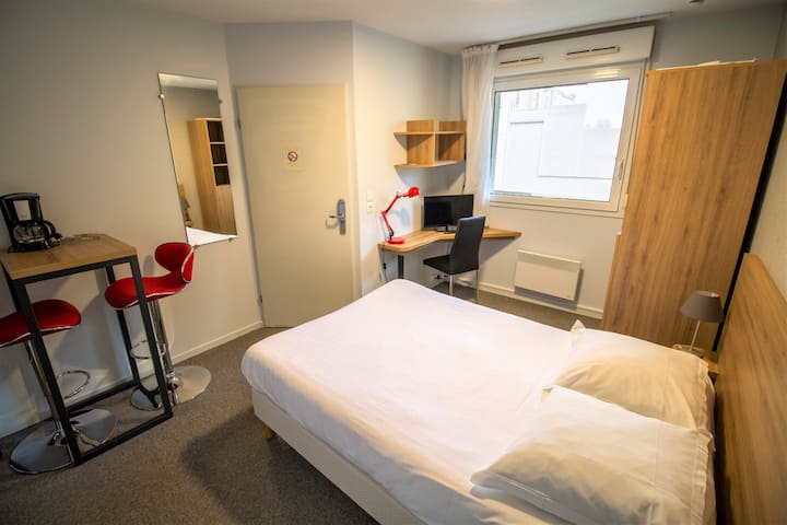 Venga a descubrir Reims y alójese en nuestra moderna y luminosa residencia Le Champ de Mars. El estudio que ofrezco es de 20 m² y está totalmente amueblado y equipado para su plena comodidad.