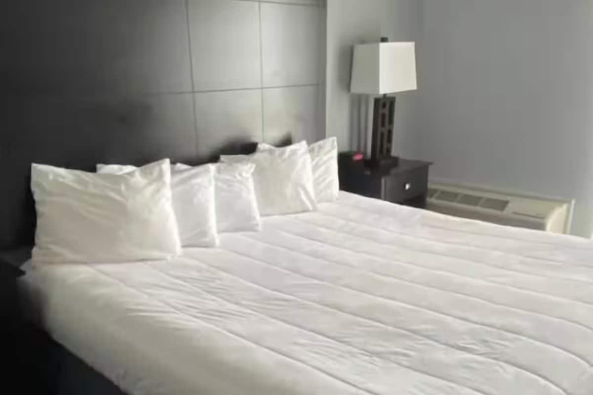Entra en la habitación recientemente renovada, donde la comodidad contemporánea se combina con un diseño de buen gusto. Al entrar, serás recibido por un ambiente espacioso y acogedor. La pieza central de la habitación es una lujosa cama tamaño king adornada con sábanas frescas, que te promete una noche de sueño reparador. Todas las habitaciones tienen wifi gratuito, TV, mininevera, microondas, cafetera de una taza y suministros; todos los equipos, muebles y camas son nuevos en 2024.