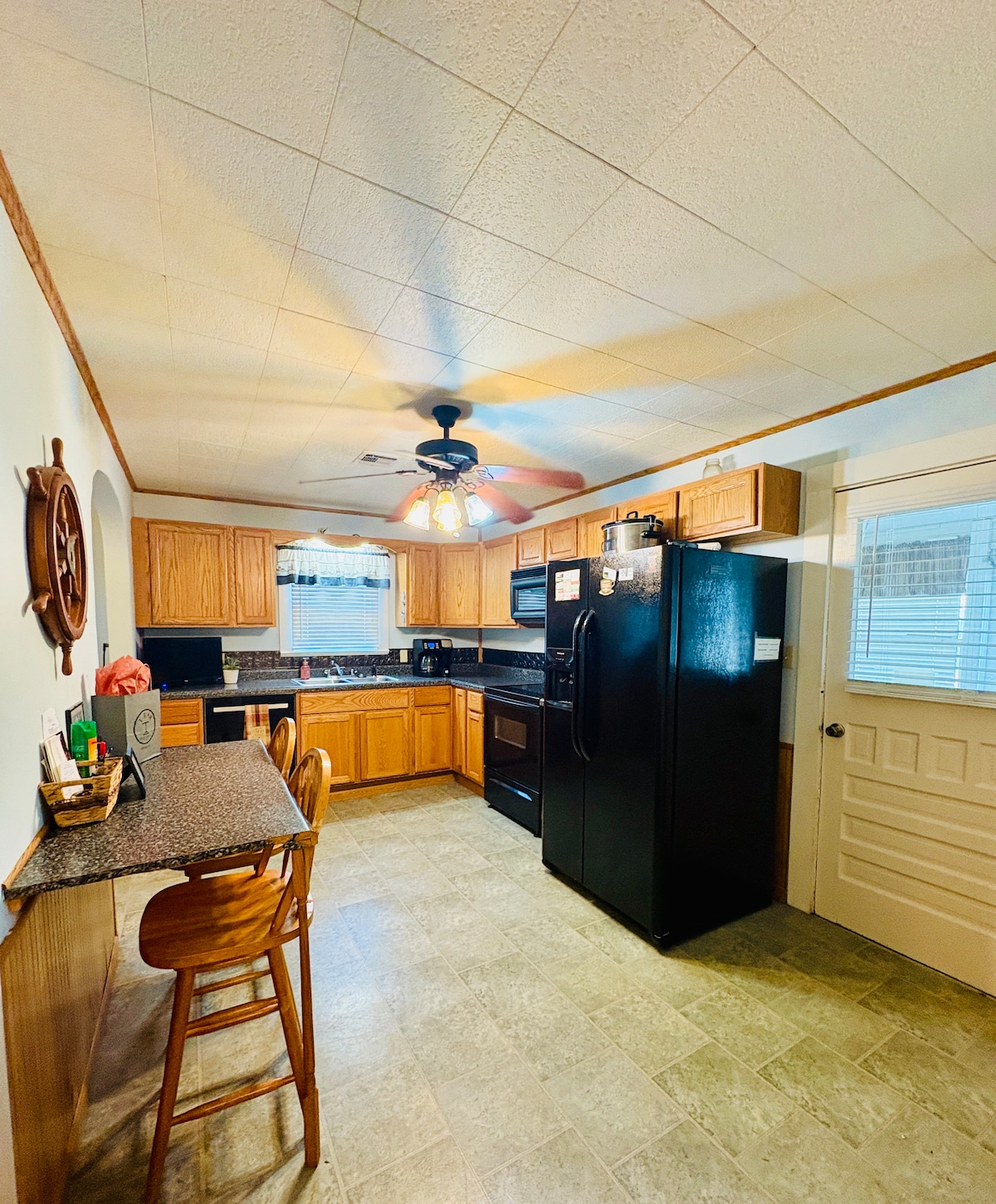 Escapt to this 2-bed, 1-bath home tucked in the Flint Hills. Enjoy sweeping farmland views, plush leather couches, Roku TV, full kitchen with gas stove, washer/dryer, and Starlink internet. Sip coffee on the patio, watch the sunset, and let the fenced yard offer peace of mind for pets or kids. Fresh air, quiet moments, and farm-inspired comfort await—ask about farm-store add-ons to make your stay extra special.