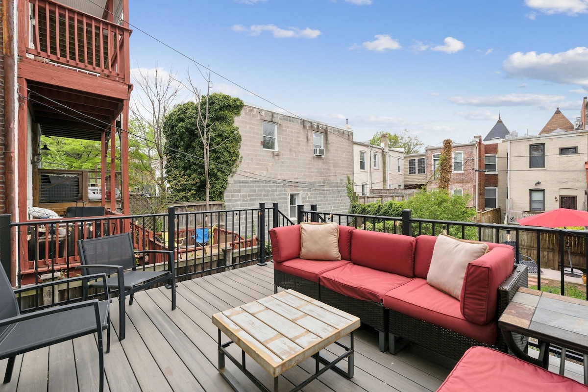 Disfruta del encanto y el lujo de esta espaciosa casa en el corazón de Petworth, perfecta para un máximo de 11 huéspedes. Con interiores elegantes, una cocina gourmet totalmente equipada y un patio trasero privado, es el refugio ideal para familias y amigos. Disfruta de un fácil acceso a las mejores atracciones de DC, a pocos pasos de estaciones de metro, parques y mercados locales. Ya sea que estés aquí para relajarte o explorar, este alojamiento ofrece el equilibrio perfecto de comodidad, estilo y comodidad para una estancia inolvidable.