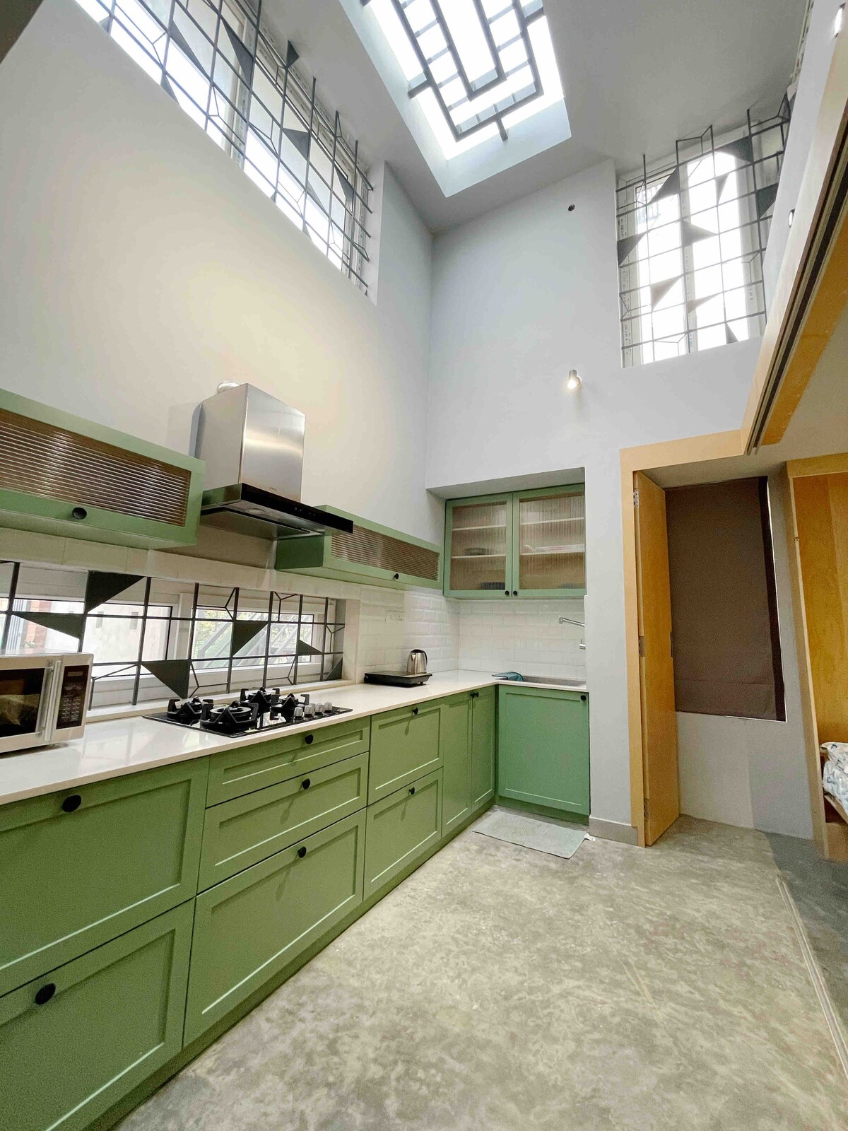 Amplia suite 1BHK de diseño de 600 pies cuadrados con balcón privado | Wifi de fibra óptica de alta velocidad y TV inteligente con plataformas de streaming, escritorio de trabajo/comedor, respaldo de energía las 24 horas, los 7 días de la semana para trabajo y comodidad ininterrumpidos | Cama tamaño king Luxe y colchón ortopédico, armarios de madera para almacenamiento | Cocina pequeña totalmente equipada | Sofá cama en la sala de estar , ocupación máxima 4 | Acceso al ascensor, servicio de limpieza profesional y acceso a lavandería de pago en el sitio para estancias largas | Ubicado en el centro de Bangalore | LGBTQIA++ Afirmativo