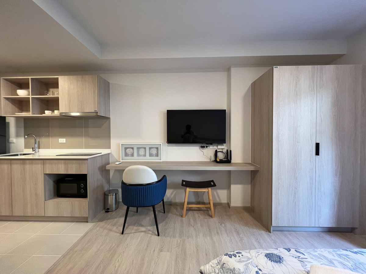 Apartamento de nueva construcción, a 300 metros de la playa, con piscinas, sala de internet, sala de juegos para niños y gimnasio. Totalmente amueblado: • Cama, armario, mesa de comedor, sofá, lámparas • TV, internet, lavadora, aire acondicionado • Nevera, microondas, cocina eléctrica, campana extractora • Cortinas, juegos de cama, almohadas y mucho más. Ofertas de Phyllie Cafe: • Desayuno para 1 persona al día • 10 % de descuento en toda la comida y bebida El propietario habla inglés con fluidez y está disponible para ayudar en cualquier momento.