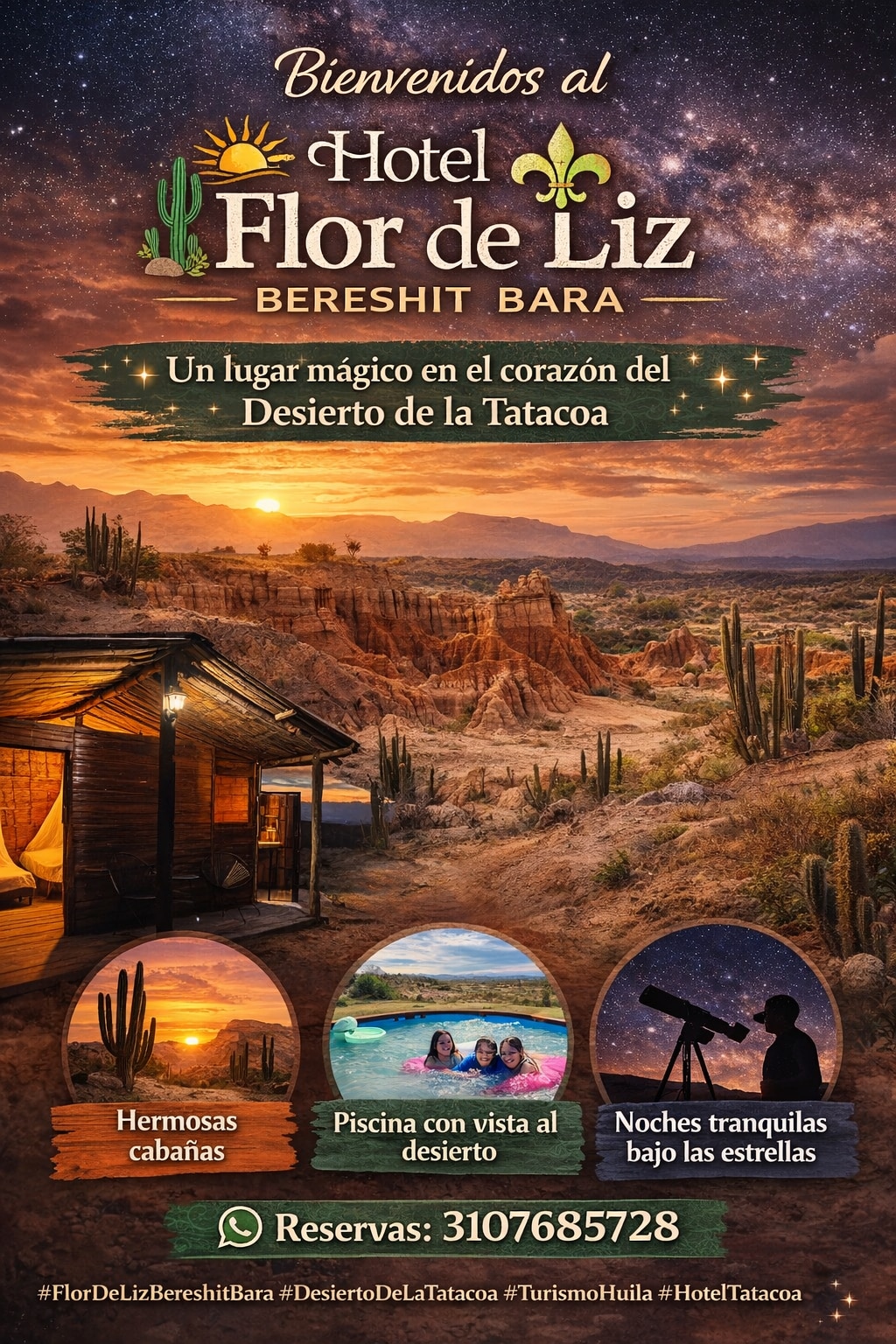 Hostal Villa Del Río Las Brisas ofrece una experiencia única en Villavieja, a pasos del río Magdalena y cerca del Desierto de la Tatacoa. Con ambiente familiar, Wi-Fi, cocina compartida y habitaciones con A/C, es ideal para familias, grupos y viajeros. Disfruta de talleres artesanales, tours fluviales y la historia de un pueblo con más de 450 años. Atendido por sus dueños, brinda trato cercano y guías confiables. Además, somos pet-friendly.