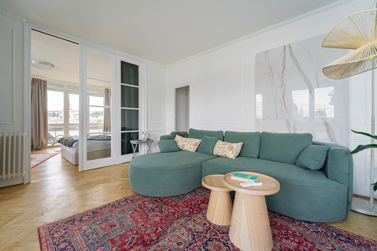 Elegant and spacious apartment in Buda with a large private terrace overlooking a quiet inner garden. Relax in the hanging chair with your morning coffee or unwind after a day in the city. Perfect for couples, business travelers or longer stays. Self check-in and fast WiFi included. • Elegant, spacious interior • Self check-in anytime • Fast & reliable WiFi • Fully equipped kitchen • Easy access to the city center NTAK: MA24106080