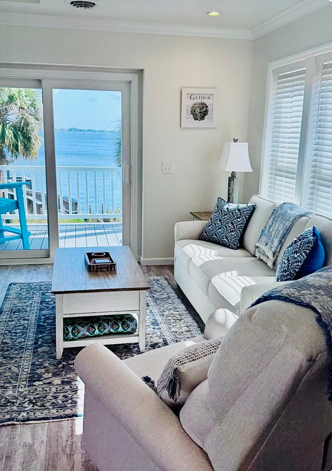 Waterfront coastal retreat offering beautiful river views and a light, elegant atmosphere within the Oceanview community. This elevated stilt home features thoughtfully designed interiors styled in soft cream tones that create a relaxed coastal feel. A comfortable layout and inviting living spaces make it easy to unwind and enjoy everyday waterfront living. Ideal for guests seeking a polished, welcoming home with timeless coastal style along the Indian River.