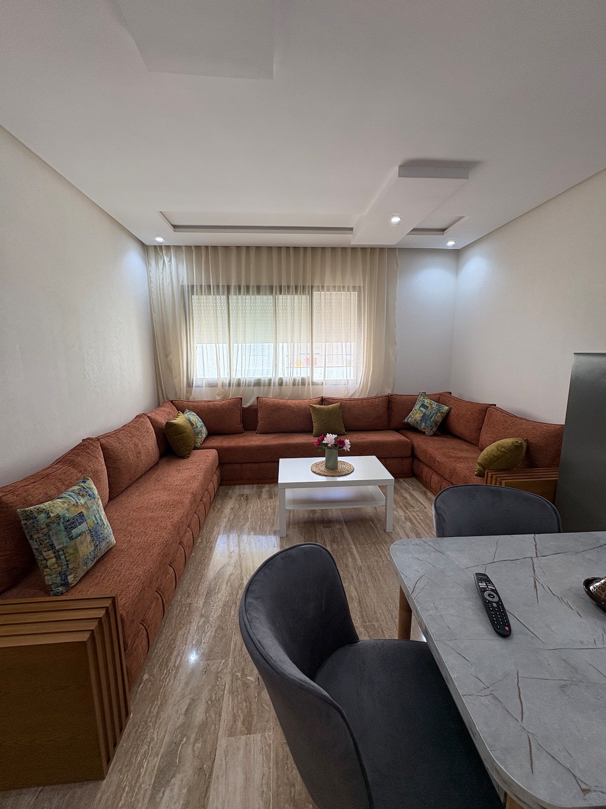 Moderno apartamento en el corazón de Tánger, a dos pasos del estadio. Residencia segura con 3 piscinas (abril a noviembre) 👦zona de juegos, estadio. 🧑🧑🧒Ideal para familias: suite principal con baño, habitación con 2 camas individuales, 2º baño salón, cocina equipada lavadora/secadora aire acondicionado centralizado Cerca de tiendas y servicios. (Marian, estadio grande, Corniche 13 min) ¡☀️Perfecto para una estancia familiar cómoda y práctica! 🚘 posibilidad de alquilar un vehículo