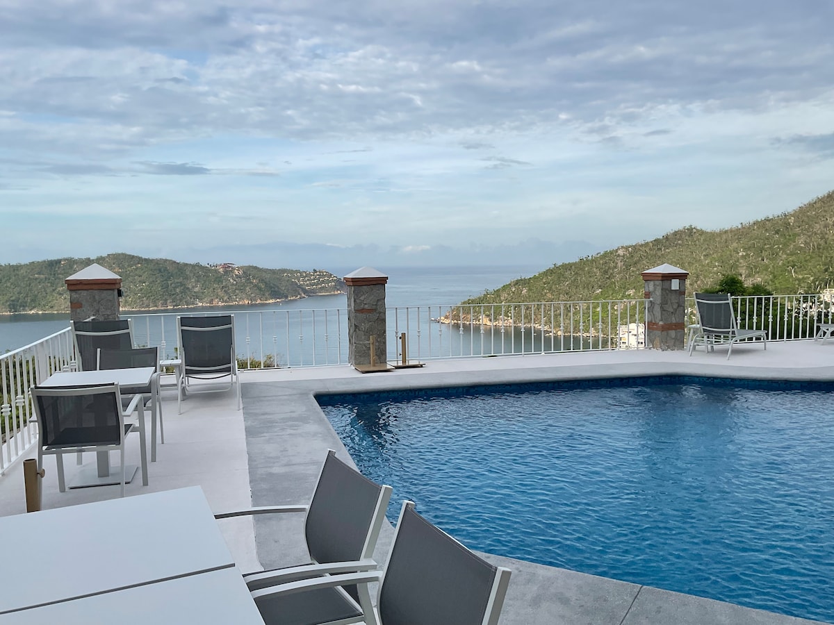 ¡Reabrimos, te esperamos con mucho gusto! Disfruta nuestra alberca y acceso privado a la playa. ¡Perfecto para vacaciones o home office! Balcón con vista increíble a la bahía. WiFi en el departamento y zonas comunes. Pantalla Smart lista para Netflix, Prime Video, etc. Espacio de trabajo en la habitación para leer o trabajar con tu laptop/tablet. El departamento está en excelentes condiciones. Aunque el condominio está en remodelación por el huracán Otis, todo es funcional.
