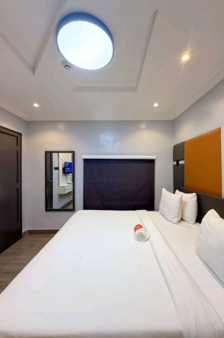 Es una casa independiente exclusiva con autoservicio ubicada en el corazón de Ikeja, Lagos ¿Estás de viaje de negocios o de vacaciones/luna de miel en Lagos? ¿Estás pensando en un estilo de vida cómodo y un entorno impecable? Luego experimenta un refugio en nuestra casa de autoservicio en el continente... hogar lejos de casa. Cada habitación se presenta en una decoración urbana contemporánea de muy buen gusto y está totalmente equipada con una cocina equipada, televisores LED, aire acondicionado, 247 Power/Inverter, CCTV, guardia de seguridad en el lugar, estacionamiento, W/M/secadora.
