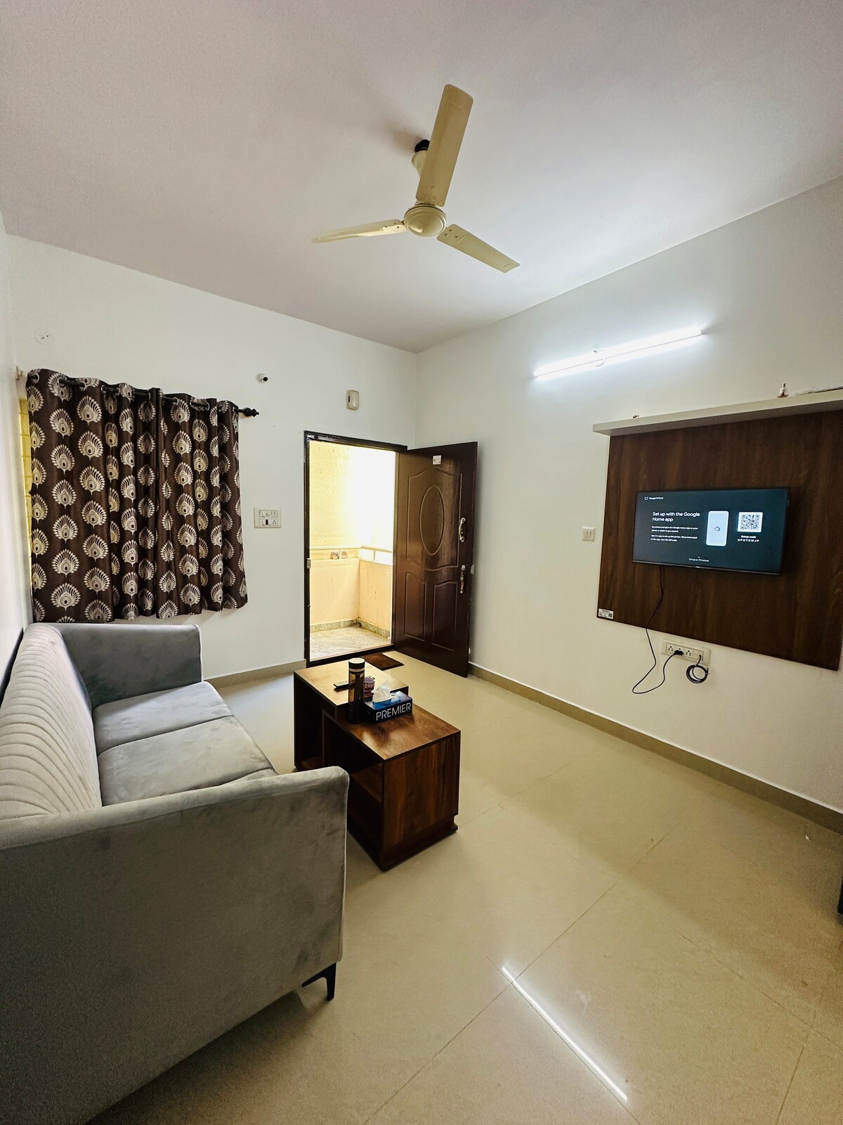 Feel like you’ve escaped the city without leaving it. Wrapped in greenery, this bright, spacious, east-facing first-floor home in the Electronic City area is in a quiet gated community, 1 km from Hosur Rd (NH44). Ideal for families, professionals, or longer stays, it offers two bedrooms with attached baths plus private sleeping areas and a fully equipped kitchen. Includes 55" Smart TV, 200 Mbps WiFi, washing machine, large fridge, parking, and 24/7 security. Clean, comfortable, peaceful, homely.