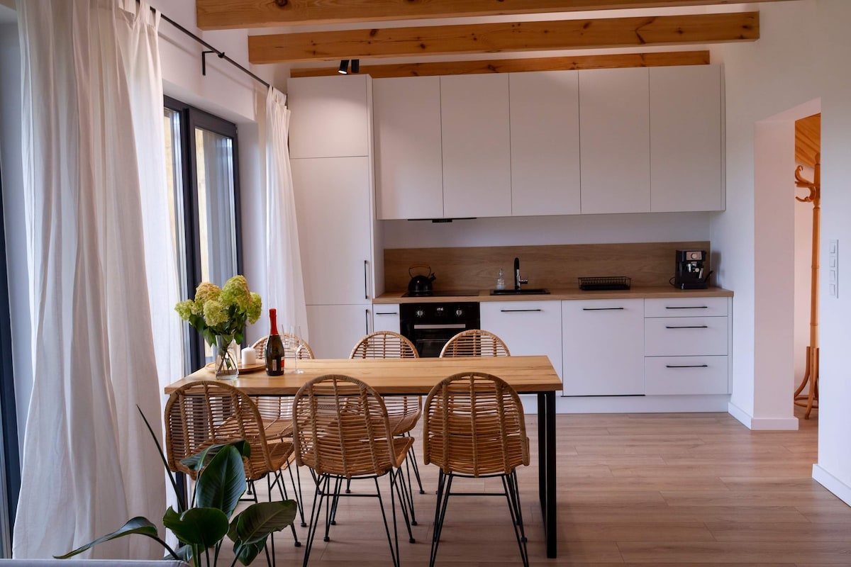 Bienvenido a una de nuestras 6 casas: la casa DEL BOSQUE. Esto es parte del complejo que creamos con 2 piscinas, una gran área común, un parque infantil. La casa tiene 4 dormitorios, sala de estar, comedor, cocina bien equipada, 2 baños y 2 terrazas. Será cómodo para 8-10 personas, para familias con niños pequeños puede alojar a unas 12 personas. Hay bosques, lagos, senderos y senderos cercanos. El lugar tiene su propio ambiente único y ya ha ganado muchos fanáticos leales y leales. Es ideal para escapadas familiares.