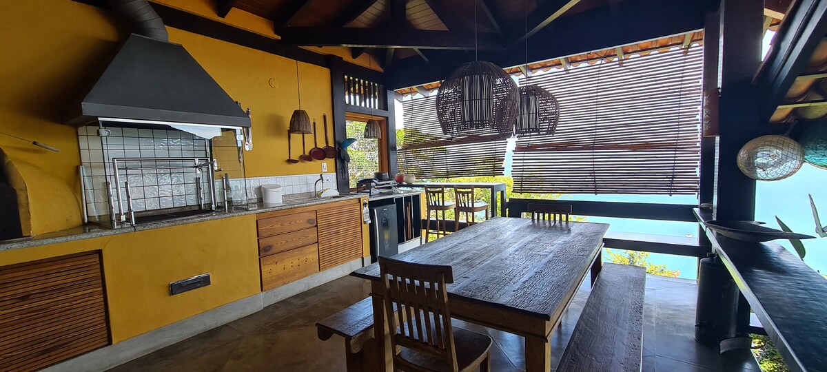 Ubicada en el sur de la isla, la casa está en una pequeña bandeja de la avenida principal junto al mar. Además de ser hermosas y cómodas, todas las habitaciones de la casa, con la excepción de los dormitorios, ofrecen vistas del mar. El spa en la terraza es un verdadero privilegio. Las playas más cercanas son Portinho, Oscar e Ilha das Cabras: ¡un espectáculo de aguas cristalinas! ¡Una experiencia inolvidable! Te damos la bienvenida. (Registro y salida negociables)