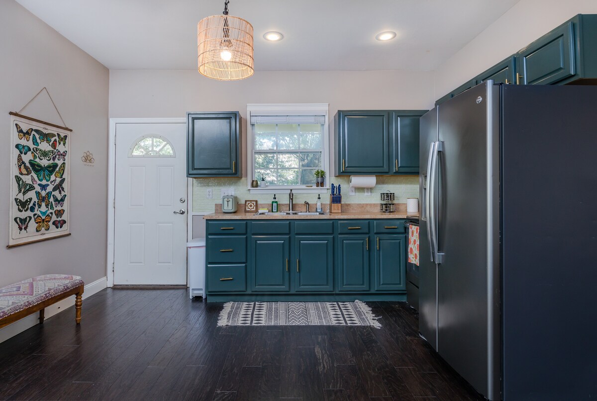 5 min to DT- Chic Home, Tropical Yard w/ Fire Pit