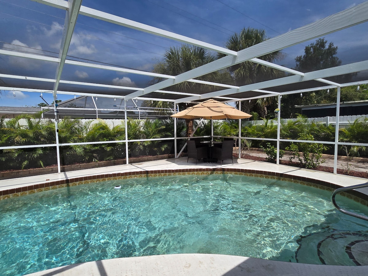 Oasis con piscina al estilo de la vieja Florida, cocina al aire libre, fogata