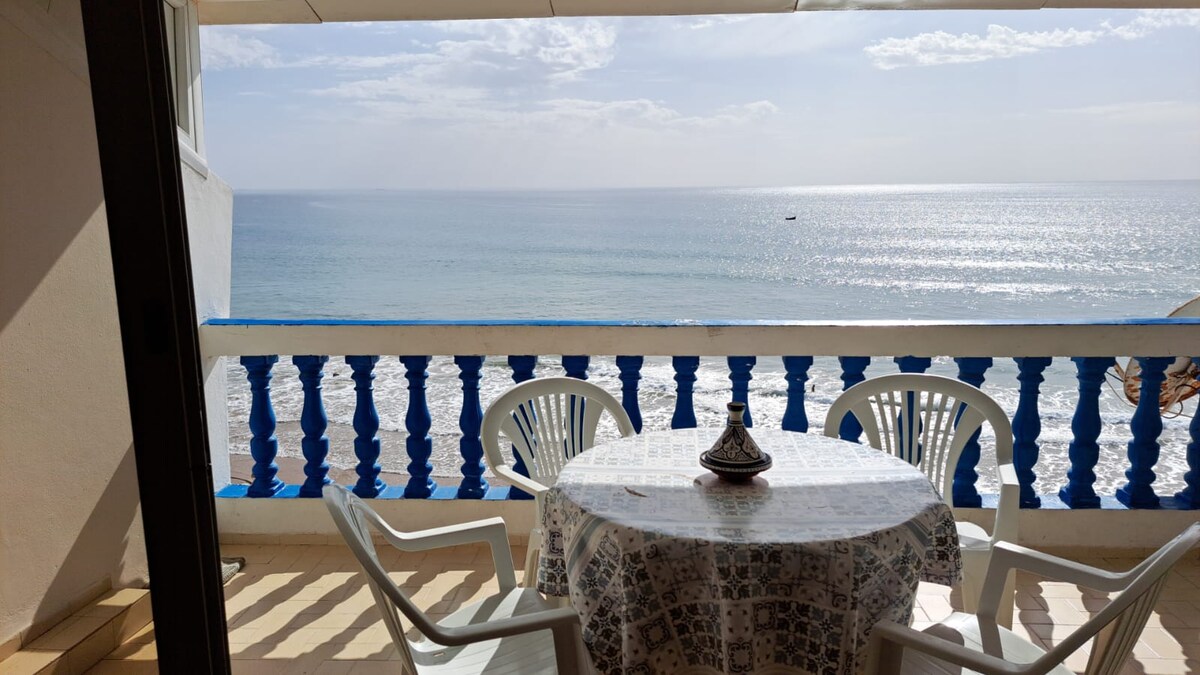 Está bellamente construido y diseñado en un apartamento de 2 dormitorios en el primer piso. Es espacioso, bien amueblado y decorado. 1 habitación con cama doble, 1 habitación con cama individual, gran sala de estar, estilo marroquí, sofás donde pueden dormir otros 3 huéspedes, la cocina espaciosa bien equipada con una planta abierta. 2(ducha, inodoro e inodoro). Wifi gratuito en la casa. Acceso gratuito a la terraza de la planta superior, hay unas vistas impresionantes del océano y de todo Imsouane, un lugar encantador para disfrutar del café de la mañana.