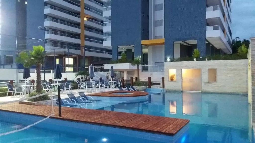 Moderno piso que esta ubicado en el módulo 6 de la playa Riviera de São Lourenço, en la cuadra del mar y bella vista de la playa. Son 3 habitaciones, dellas 1 es suíte y todas con condicionador de aire. Adega para vinos y cerveceria. Parrilla en el balcón. Cocina completa, incluso máquina Nespresso. En la área común del edifico, hay piscina, quadra de tênis, gymnasio y sauna. Servicio de playa todos los dias de las 7am a las 5pm. Localización magnífica, pues puedes ir caminando hasta el shopping