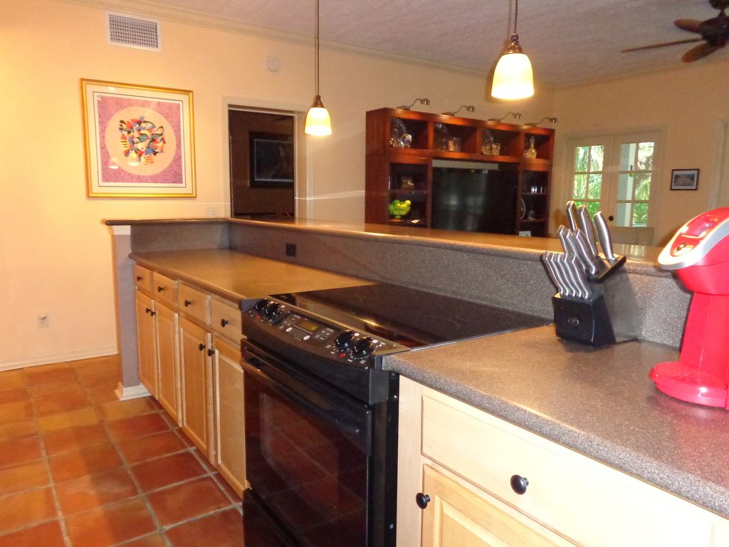 - Tres cuartos de acre de privacidad tropical aislada. - Ubicación deseable al final de una calle tranquila. - Casa principal y casa de huéspedes incluidas. - La gran piscina climatizada con amplia zona de patio ofrece una vida privada al aire libre. - El patio del oasis tropical incluye hibisco, ave del paraíso, etc. - Los árboles de aguacate, carambola, mango, lima y papaya proporcionan fruta de temporada. - La parrilla y el brasero están justo al lado de la zona de la piscina. - Las playas están a 5,5 millas en coche. - Restaurantes y tiendas de comestibles a solo 2-3 minutos.