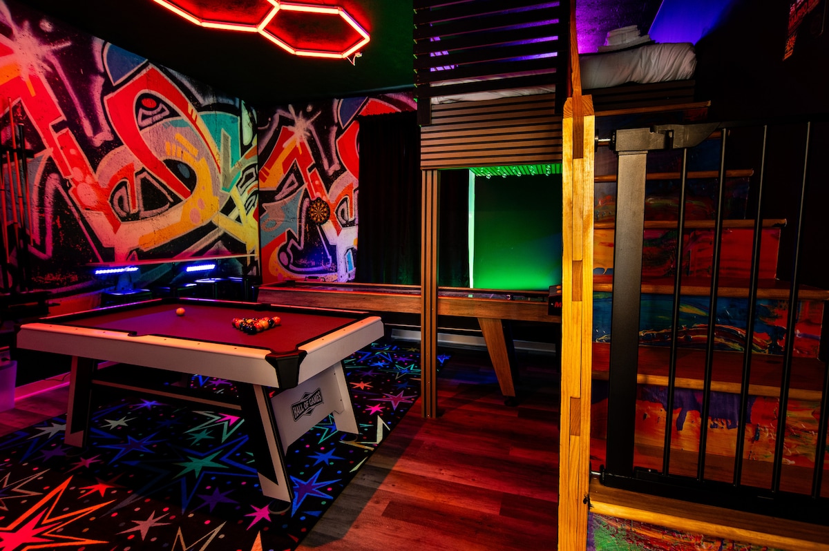 ¡Tu oasis urbano en el corazón del centro de la ciudad! ¡Este elegante refugio es tu hogar lejos de casa, con dos televisores de 65 pulgadas! ¡Disfruta de una cama tamaño king con opción de sofá cama y una cama plegable para invitados para 2 personas más! La seguridad se combina con la comodidad, ya que estás a pasos de Gainbridge Fieldhouse, Lucas Oil Stadium y el Centro de Convenciones. A poca distancia a pie de Mass Ave, museos y una gran variedad de restaurantes y locales nocturnos. Esta joya no durará mucho, ¡reserva ahora para una estancia inolvidable!