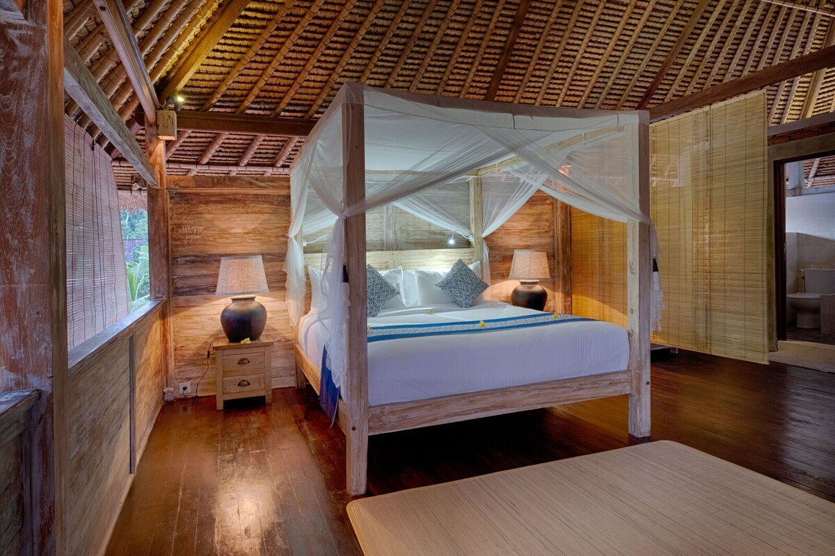 Experimenta la vida lujosa en nuestra casa del árbol balinesa, enclavada en medio de la verde campiña. Esta cabaña de lujo, que se asemeja a una pequeña casa, cuenta con un diseño impecable que se mezcla a la perfección con la naturaleza. Despiértate con una vista increíble de las majestuosas montañas, desde tu cama. Relájate en la bañera única al aire libre, rodeada de los serenos susurros de la selva. Disfruta de una encantadora barbacoa en la terraza privada, con un telón de fondo panorámico. Sumérgete en la esencia de Bali, donde el lujo se encuentra con la naturaleza.
