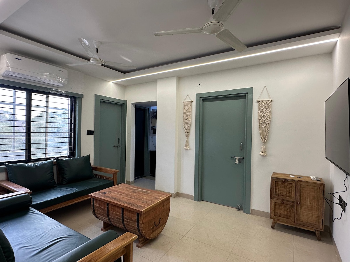 ¡Disfruta de la comodidad y el lujo en nuestro moderno apartamento de 1BHK! Perfecto para parejas, familias o viajeros de negocios, cuenta con interiores elegantes, un acogedor dormitorio y una cocina totalmente equipada. Situado en una zona tranquila con fácil acceso a mercados, cafeterías y transporte. Relájate, desconecta y siéntete como en casa