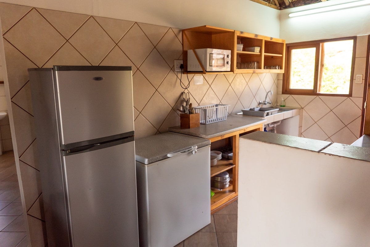 El bungalow, idealmente situado frente al cocotero, cuenta con 3 habitaciones : 1 baño privado y 2 habitaciones sencillas (2 camas sencillas por habitación). Ambos baños están equipados con ducha, inodoro y lavabo. Disfrutarás de un salón privado: abre las grandes puertas de vidrio y tendrás tu propia terraza privada y barbacoa en la naturaleza. La cocina ofrece todas las comodidades para una cómoda estancia independiente. Hay aparcamiento gratuito. El bungalow será completamente privado.