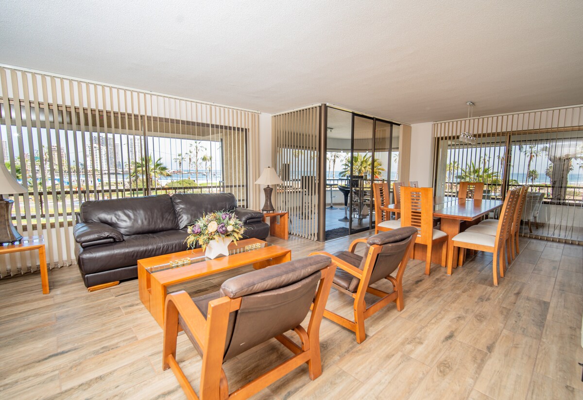 Acogedor departamento frente al mar, excelente ubicación, con estacionamiento y a pasos de pubs, restaurantes, mall, supermercados y casino.