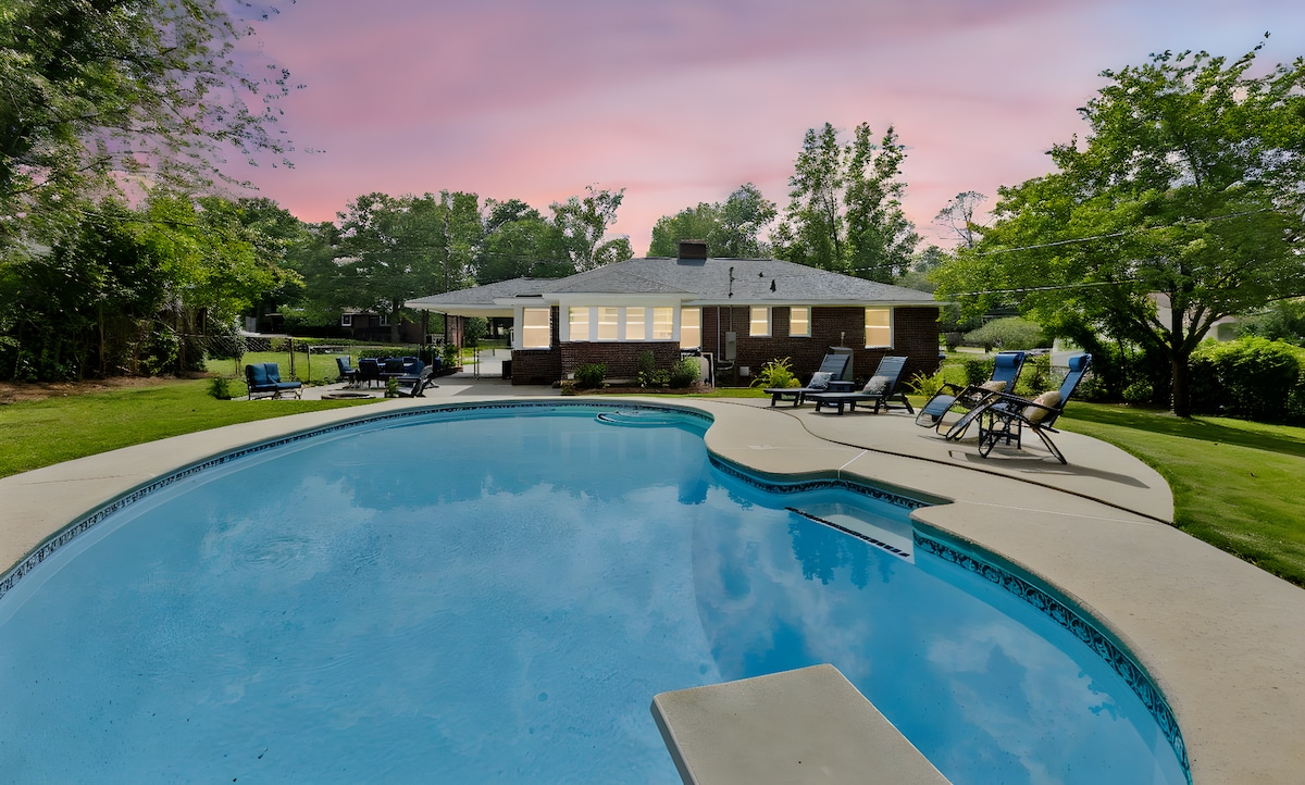 Bienvenido a Golden Reflection Getaway, un refugio espacioso y elegante perfecto para familias y grupos. Disfruta de esta amplia zona familiar de más de 2600 pies cuadrados con tres dormitorios temáticos de lujo en la planta superior y opciones adicionales para dormir con un baño completo en la planta principal. Ubicado en un barrio tranquilo, a solo 7 minutos del vibrante corazón del centro de Columbia y a 18 minutos de Fort Jackson. Relájate, recarga las pilas y crea recuerdos inolvidables en esta casa cómoda y diseñada con esmero.