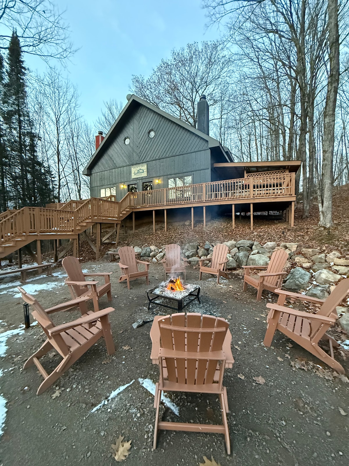 Enjoy memorable mountain views at this lovable 3 bedroom cabin, located just a 5-minute walk from the Ski Brule lifts. Fire up the gas grill and host a cookout on the scenic back deck. Spend your nights making s’mores at the campfire pit, then cozy up inside by the wood burning stove inside while watching your favorite streaming services. A perfect cabin to gather and relax with friends and family.