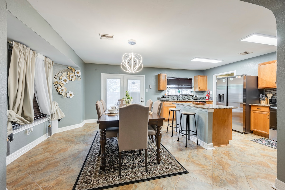 Live like a local, this is our home away from home!🔹ENTIRE UNIT- perfect for everyone, business professionals to families🔹 quick drive to the Arlington Entertainment District, AT&T Dallas Cowboys Stadium, Six Flags, and World Series Champions Texas Rangers🔹completely furnished home🔹granite countertop 🔹stainless steel appliances🔹luxury bedding🔹in-unit washer/dryer with complimentary laundry soap🔹keyless entry🔹pull up to your doorstep with private assigned covered parking, and so much more