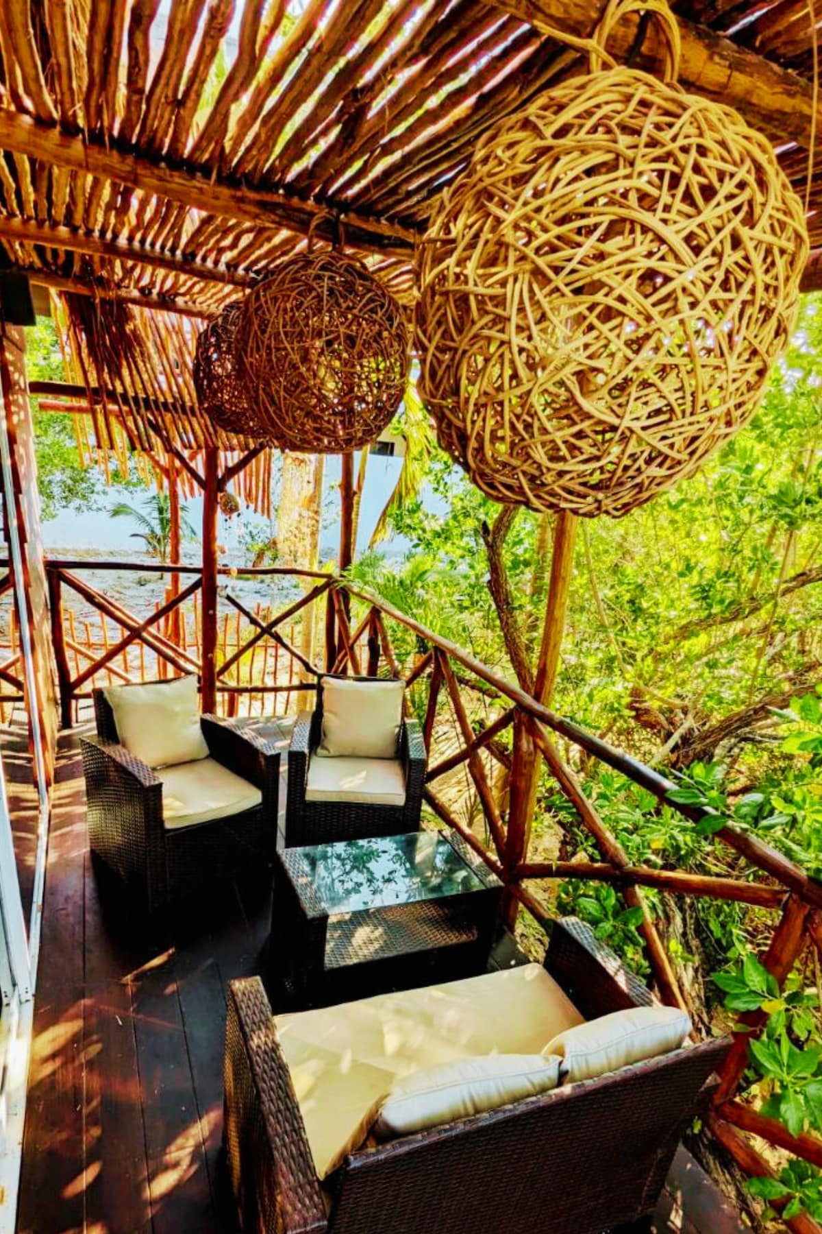 CHECK IN/OUT FLEXIBLES! XAVAGE es una exótica e íntima cabaña eco-chic, que combina la aventura selvática del mangle con la apacible tranquilidad de Punta Cocos. Se ubica a 3 min de las hermosas playas y bioluminiscencia. Te relajarás en su romántica palapa con hamacas yucatecas, ideal para unas fotos de ensueño! La cabaña tiene cocina totalmente equipada, Internet satelital, balcón, escritorio y amplia terraza pensada para quienes buscan privacidad y disfrutan del estilo rústico y artesanal.