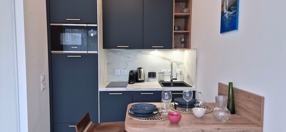 Disfruta de un alojamiento elegante y céntrico. Ven y relájate en las puertas de París en nuestro apartamento estudio, totalmente equipado con cocina completa, espacio de oficina y zona de descanso. La hemos equipado con ropa de cama de calidad para garantizarte un sueño reparador y tranquilo, y el colchón envolvente está hecho de muelles ensacados que garantizan un soporte firme. Estás a solo 4 minutos a pie de la estación de metro de Balard y a 550 m de Paris Expo. Ubicación ideal: a 20 minutos de la torre Eiffel