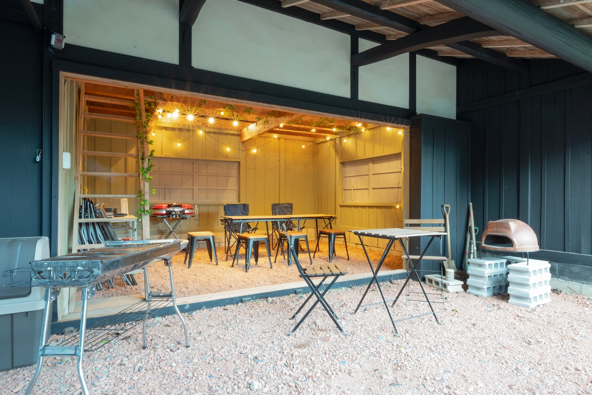 1,5 horas en auto desde Tokio A 1 hora en coche de los aeropuertos de Narita y Haneda Lleva a tus hijos a dar un paseo por la playa Después, disfruta de una cerveza en la espaciosa terraza de madera Y, por supuesto, ¡barbacoa en el jardín por la noche! Mariscos frescos capturados en el mar de Chiba y y verduras frescas Incluso si llueve, puedes hacer una barbacoa en la terraza de madera bajo los aleros del techo o en la cubierta de azulejos cubierta. La iluminación en el jardín te permite jugar al aire libre incluso por la noche.