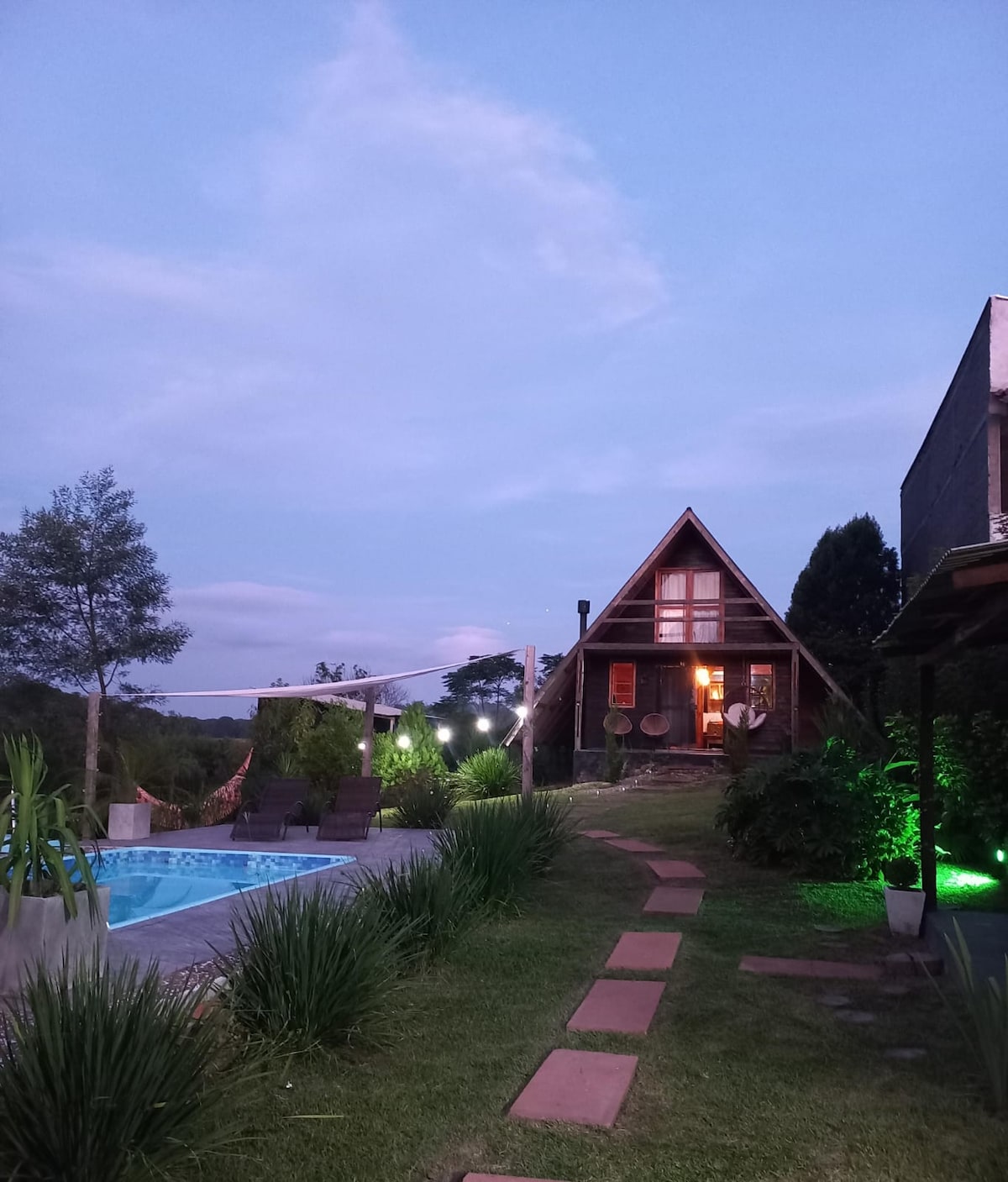 Relaxe com sua família nesta acomodação tranquila. Nosso chalé está localizado em bairro tranquilo de Itaara com boa vizinhança e está aberto para receber hóspedes em todas as temporadas. É um chalé do tipo cabana/loft todo aberto, ideal para casal ou família com filhos. Possui uma cama de casal e dois colchões de solteiro na parte superior, e um sofá-cama na parte inferior. Acomoda com conforto 4 a 5 pessoas. Não alugamos para festas. Pátio amplo com piscina, lareira e churrasqueira.