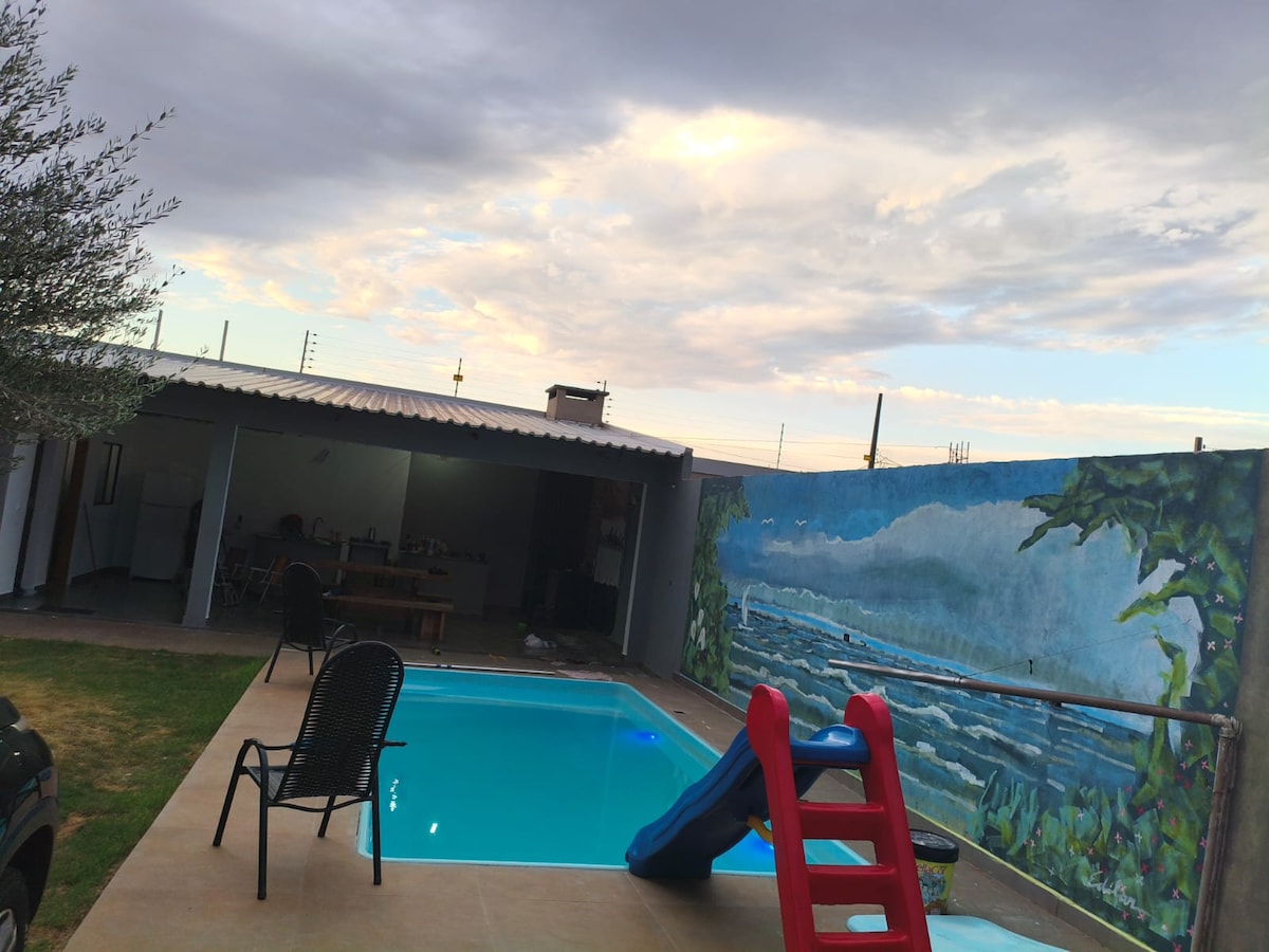 La casa muy segura puede alojar a 5 personas más. Cerca de la central hidroeléctrica de Itaipú, el Museo Eco Itaipú, el Refugio Bológico, el Polo Astronómico de Itaipú, cerca de Paraguay, el garaje cubierto, las paredes altas, la barbacoa. Calle de asfalto, piscina, utensilios, wifi. Se puede alojar a solo 2 personas, pero es necesario traer colchones. La casa tiene un sistema de seguridad, con 4 cámaras de seguridad en puntos económicos, todas fuera de la casa, para mantener la privacidad.